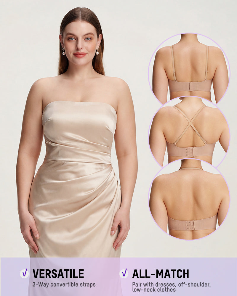 From off-shoulder dresses to summer tube tops and formal gowns, it disappears under your clothes while adapting to your look. Switch between strapless, classic, cross-back, or halter in seconds.