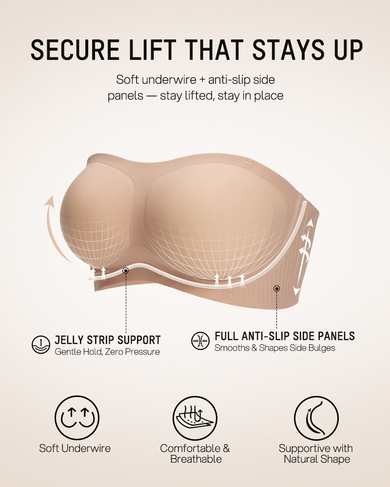 No slipping. No squeezing. A soft underwire + anti-slip lining keeps you secure all day.