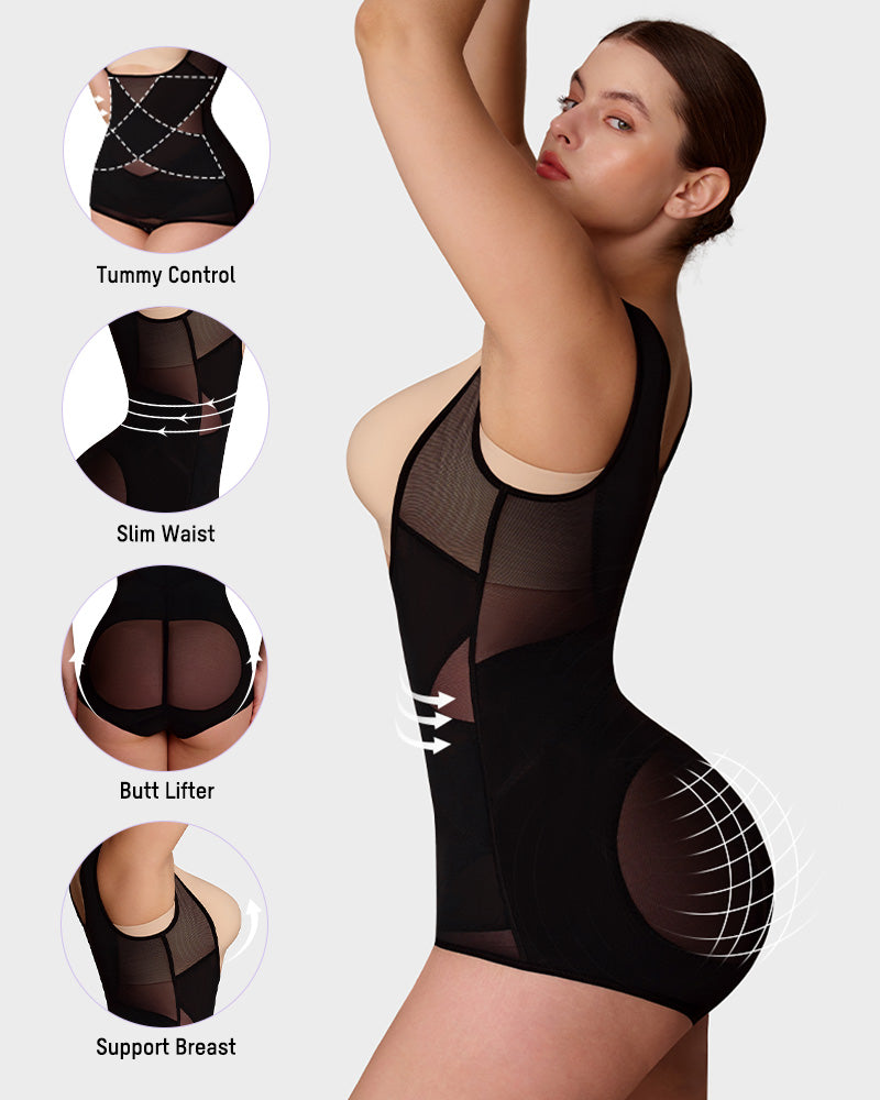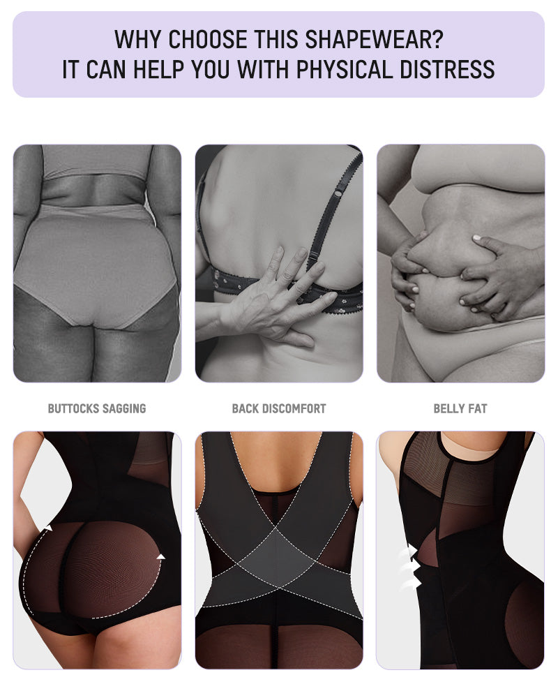 Crafted from breathable mesh and elastic fabric, this shapewear feels like a second skin. Wide straps reduce shoulder pressure, while the adjustable hook crotch design makes bathroom breaks stress-free. All-day comfort meets all-night confidence.