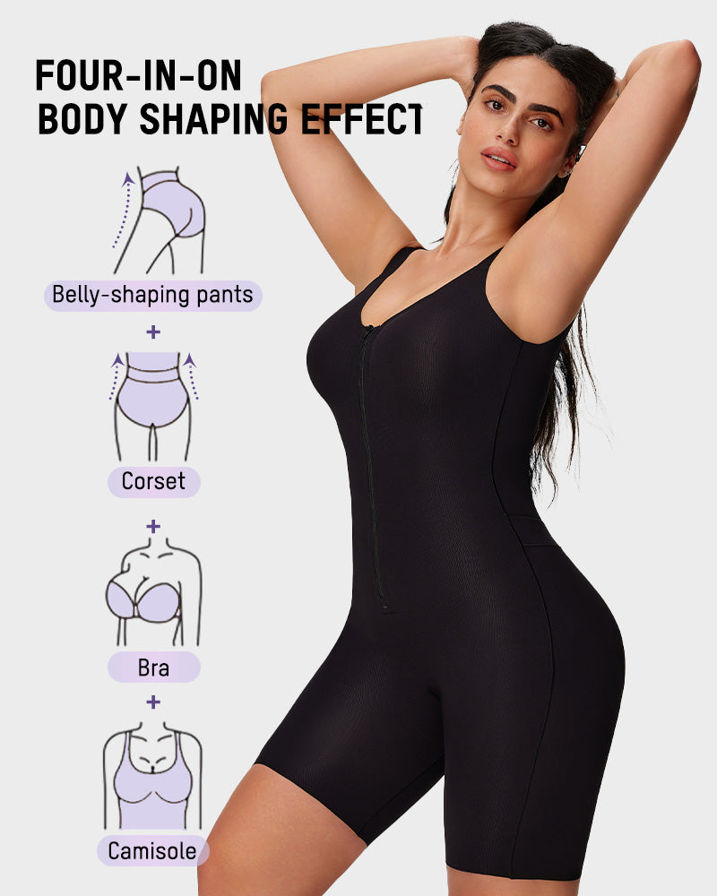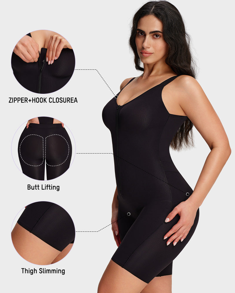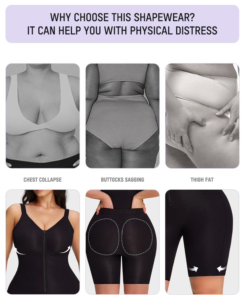 A zipper outer layer with inner hooks delivers strong tummy control and waist shaping. Soft boning prevents rolling, while thigh compression sculpts legs—easy on, easy off, instant hourglass.