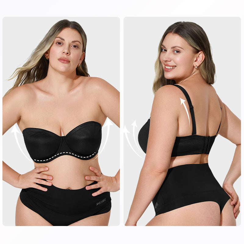 The 1/2 thin molded cups shape beautifully without adding bulk. Underwire support lifts your bust naturally, while the dual-wave anti-slip edge keeps everything perfectly in place with no slipping or adjusting.