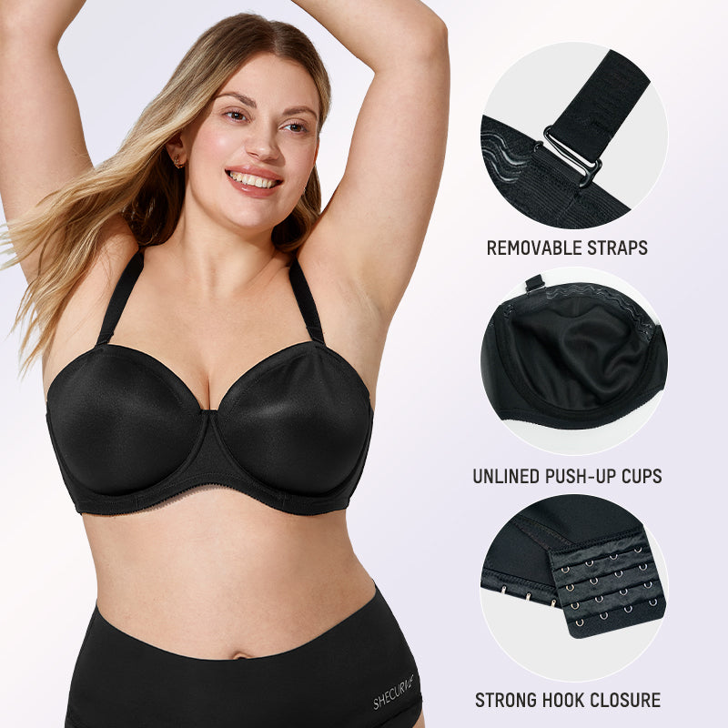 Go strapless, cross-back, or classic — the removable straps let you style it your way. Unlined push-up cups and a secure hook closure make it perfect under low-cut tops or evening dresses.