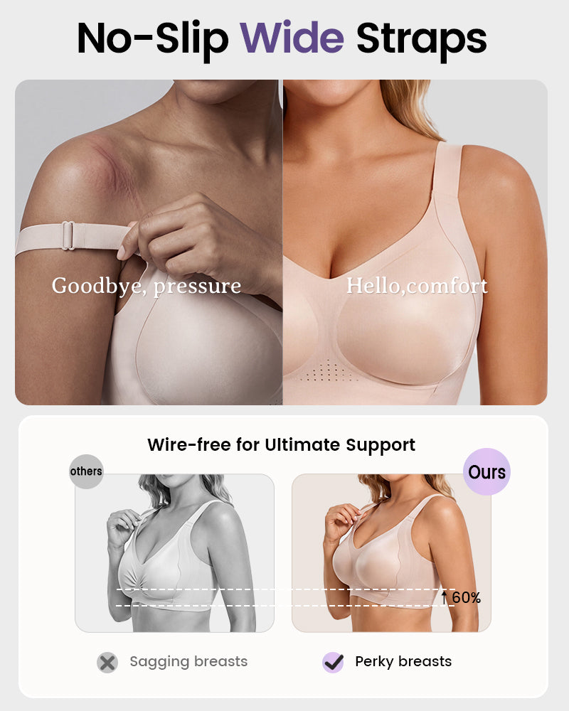 Wide, no-slip straps distribute weight evenly across your shoulders, and soft breathable fabric moves with you all day. No marks. No soreness. Just comfort, from morning to night.