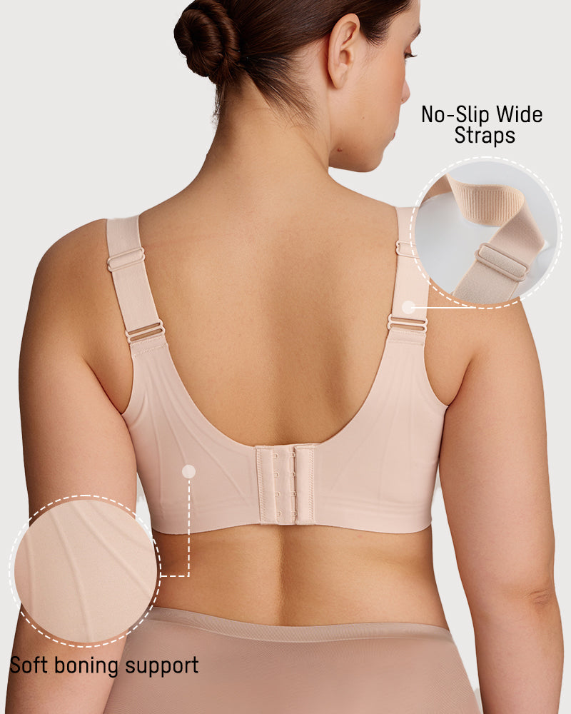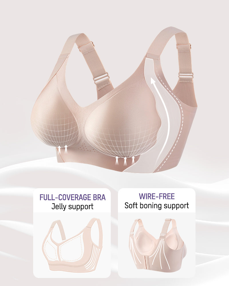 CloudLift's full-coverage cups paired with flexible jelly boning wrap and lift from every angle — no underwire needed. You get the support you need. Your ribs stay free.