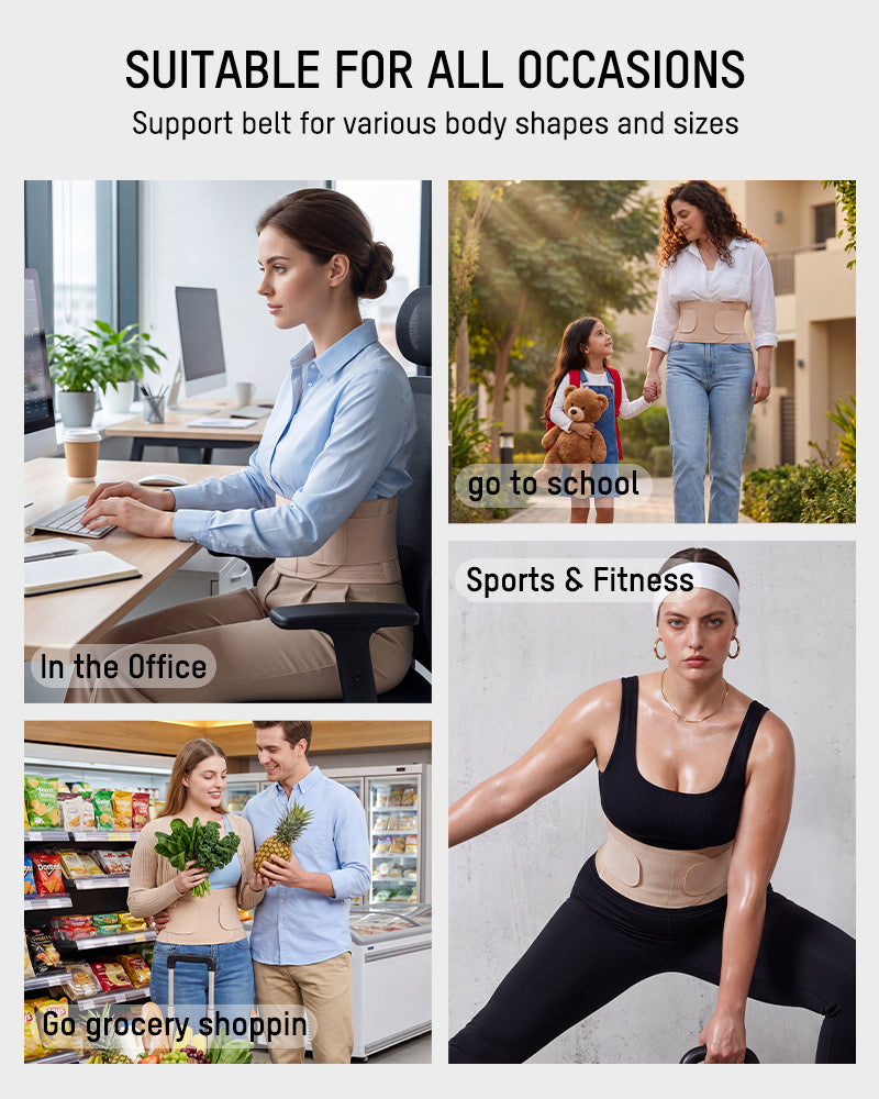 Office desk marathon, school run, grocery haul, workout session, postpartum recovery — this brace handles every part of your day. At just 0.2cm thin, it disappears under any outfit — nobody knows it's there except your back.