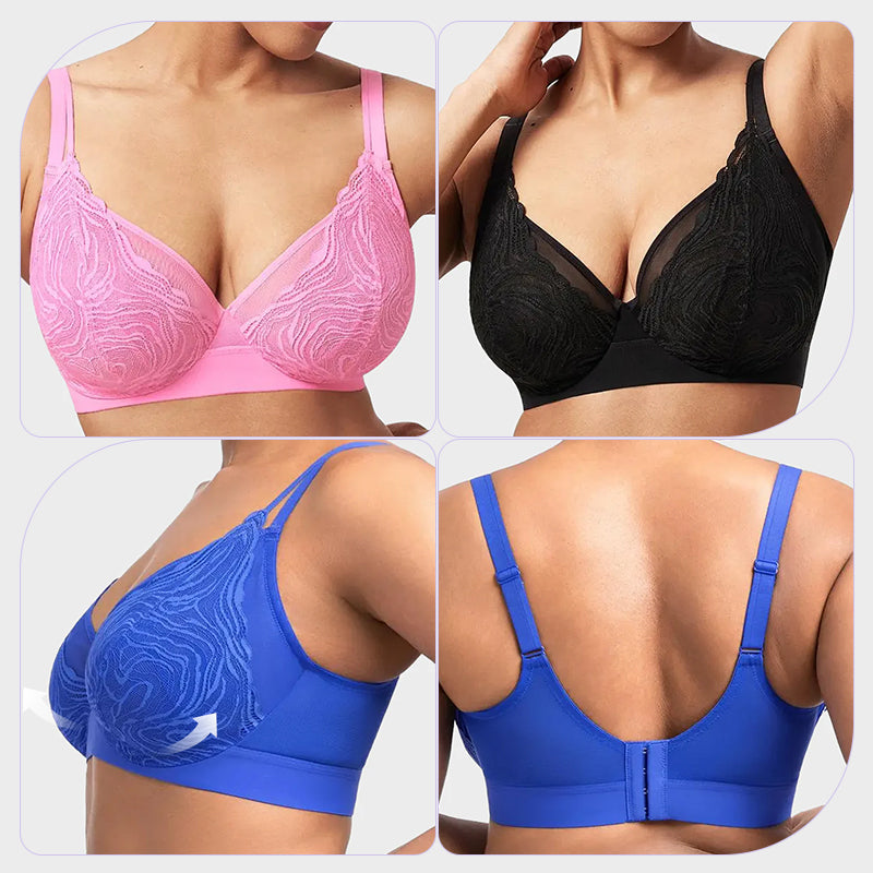 Featuring delicate lace cups, double-layer mesh construction, a wide supportive underband, and a flexible underwire, this bra beautifully balances style and function. It lifts, contours, and supports naturally, while breathable fabrics keep you cool. Ideal for daily confidence or special occasions, it’s the perfect blend of elegance and comfort.