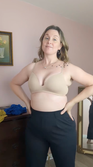 This wireless thin cup bra is fantastic! Offers great support, smooth shaping, and a deep V for cleavage. Comfortable, true to size, and now my staple everyday bra.