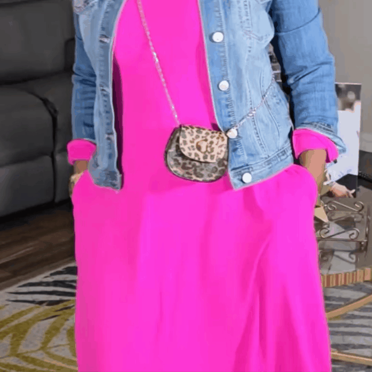 Elevate your wardrobe with a dress that combines beauty and practicality. Embrace effortless style—shop the Solid Color Pocket Lounge Dress today!