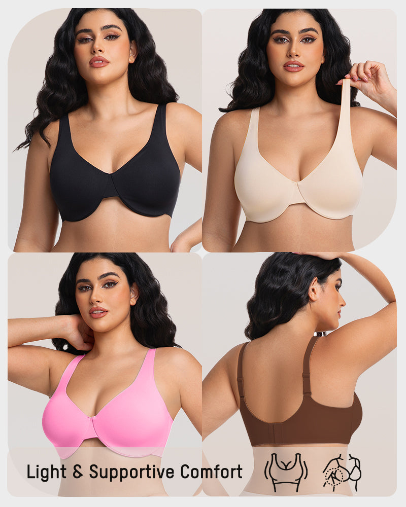 Discover the perfect bra for fuller busts – ultra-thin and breathable fabric keeps you cool, while the lifting design offers natural support. Specially made for large sizes, it minimizes without pressure, giving a smooth, seamless look under any outfit. Comfort, confidence, and elegance in one.