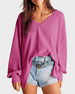Made with a lightweight waffle knit blend, this top feels super soft against your skin while staying breathable. It keeps you cozy without the heaviness of traditional sweaters.